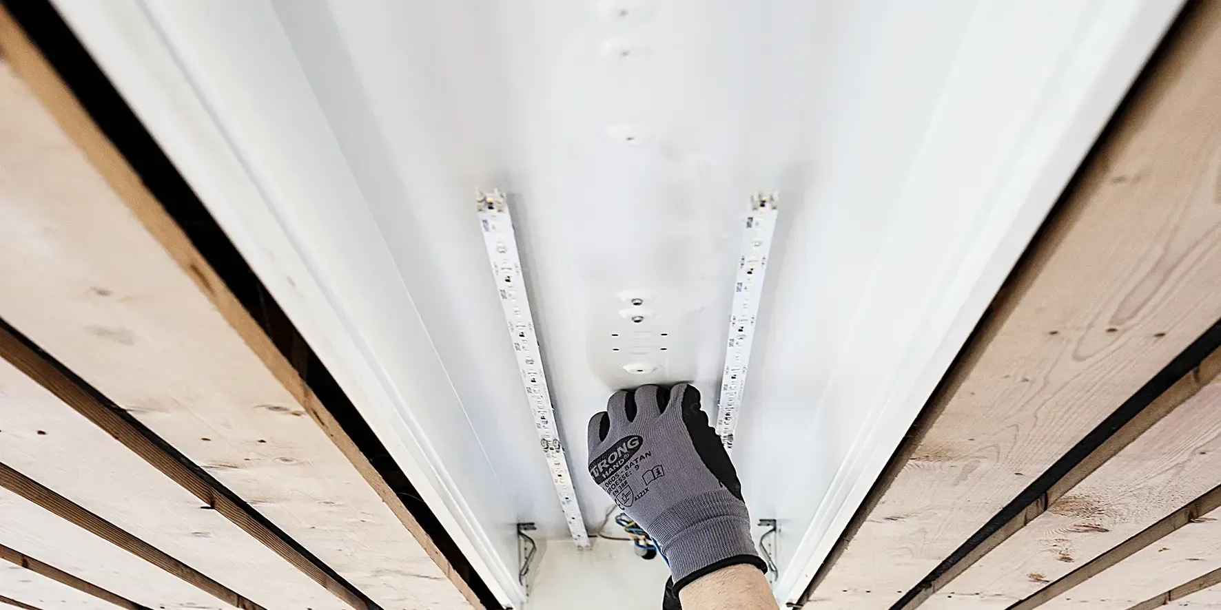 Auch für Lichtbänder wie z.B. in Industriehallen bieten wir hochwertige LED-Sanierungsmöglichkeiten an.